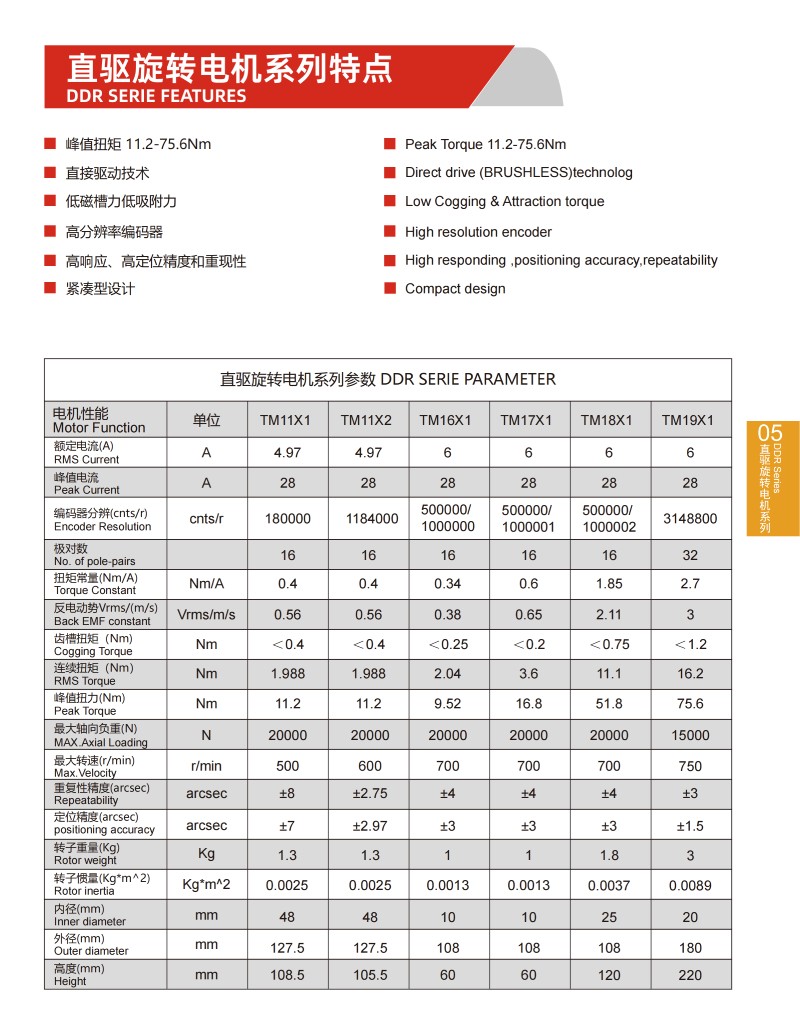 直驅旋轉電機系列參數DDR SERIE PARAMETER